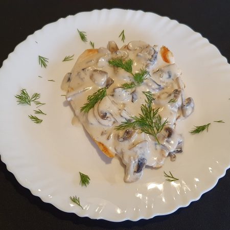 Piept de pui la gratar cu ciuperci si smantana